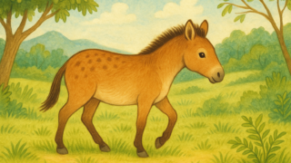 ヒラコテリウム(Hyracotherium)の無料画像です。約5,500万年前に生きたウマの祖先とされる初期ウマ類を紹介。進化や古生物の記事に使えます。