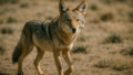 細身の体つきと鋭い視線から、乾燥地に適応したイヌ科動物の特徴が伝わります。